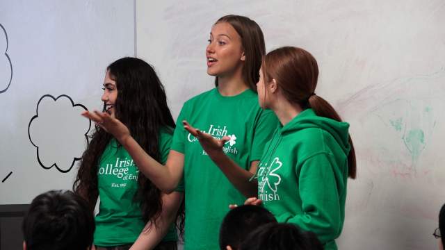 Como parte de nuestros continuos esfuerzos por mantener clases de alta calidad y mejorar la experiencia intercultural de nuestros estudiantes, tenemos lecciones semanales llamadas Programa Intercultural para Adolescentes. Los estudiantes adolescentes irlandeses se unirán a las lecciones para dirigir un ejercicio junto con el profesor que les permitirá a nuestros estudiantes la oportunidad de conectarse con los adolescentes irlandeses y sus compañeros, y hemos tenido una respuesta increíblemente positiva a este programa.