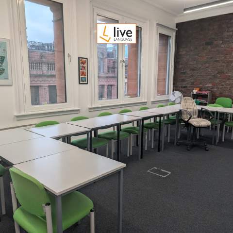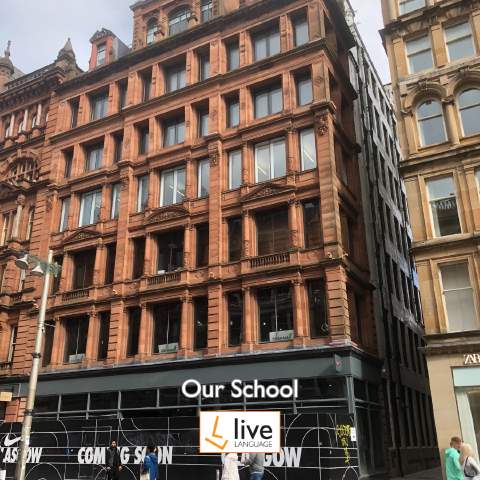Live Language está perfectamente ubicada en 20 Buchanan Street, justo en el corazón histórico del centro de Glasgow. Nuestra escuela ocupa un impresionante edificio protegido con hermosos elementos arquitectónicos de Charles Rennie Mackintosh, situándote en el epicentro de la famosa "Style Mile" de Glasgow, uno de los distritos comerciales y culturales más emocionantes del Reino Unido.