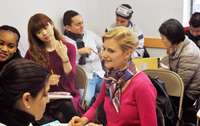 El New York Language Center utiliza un enfoque práctico para enseñar inglés a nuestros alumnos. Nuestras clases altamente conversacionales enfatizan la fluidez oral como un objetivo importante. Desde la primera clase hasta en el nivel básico, los estudiantes usarán de una manera práctica y realista. Creemos que la capacidad de hacer preguntas es una habilidad crítica y fomentamos la participación activa y la producción natural de formas del lenguaje. Para aprender inglés, el idioma debe ser espontáneo. Todas las clases incluyen práctica realista en situaciones de la vida real. La traducción no está permitida. Muchos estudiantes que han estudiado inglés en sus países de origen conocen el idioma de forma pasiva pero no pueden usarlo. Intentamos romper la barrera.