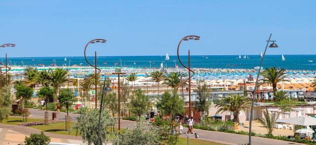 A solo 15 minutos a pie de la escuela se encuentra la famosa playa de Rímini, con más de 15 kilómetros de costa dorada. Aquí, los estudiantes pueden pasear descalzos, charlar con amigos o relajarse mientras disfrutan de la brisa del Adriático.