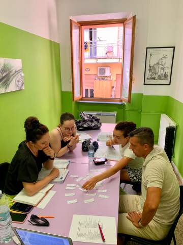 The classes are well structured and fun, the teacher is excelent and well prepared to handle and teach foreign students, mixing grammar, speech and fun activities in a very interesting and engaging manner. The school is located in Rimini’s historic center, transportation is available, also, if you arrive by car you can park close by.