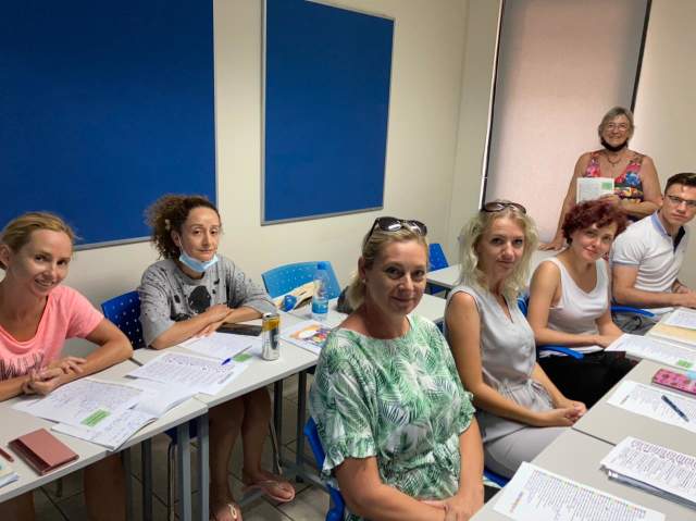Todos los profesores nativos de habla inglesa están completamente calificados y tienen mucha experiencia en la enseñanza de cursos de nacionalidad mixta. Pueden aprovechar al máximo el potencial intercultural de sus estudiantes y alientan la cooperación y la comunicación. Las nacionalidades se mezclan para que la interacción en la lección sea siempre en inglés. La idea de la escuela se basa en el concepto de que las lecciones pueden ser divertidas e interesantes a la vez que son dinámicas y educativas.