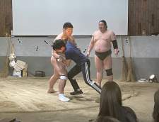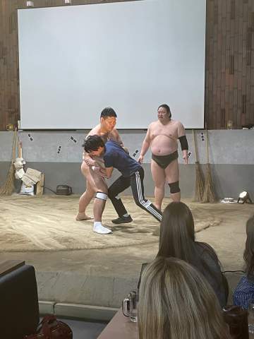 Moco sensei was so enthusiastic and taught us how to play Taiko drum with eagerness.